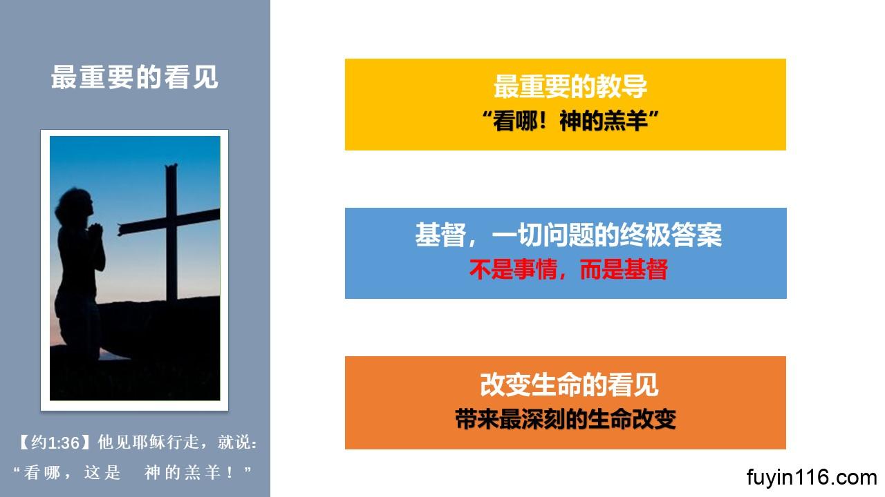 求主让每一个听众,从这篇讲道中得重要的提醒,能不断定睛基督,仰望基督,看见基督,生命就发生最重大的改变。