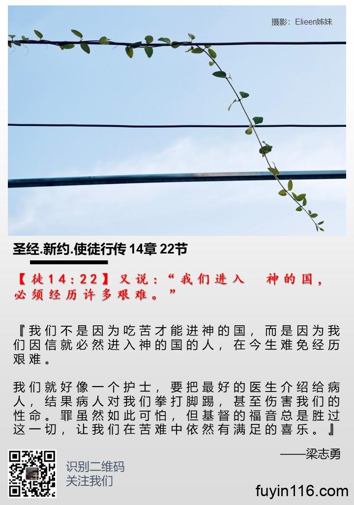 【徒14:22】又说:“我们进入 神的国,必须经历许多艰难。”