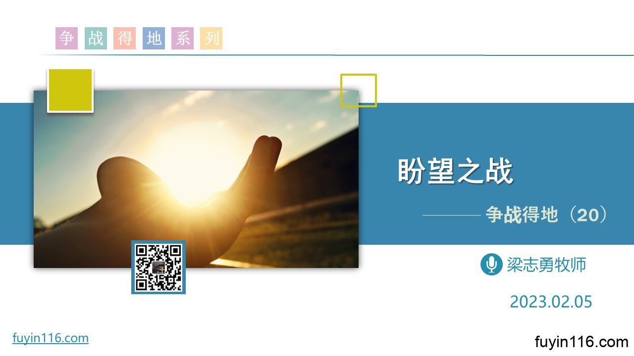在2月5日,我们继续《争战得地》系列的分享,第20讲: