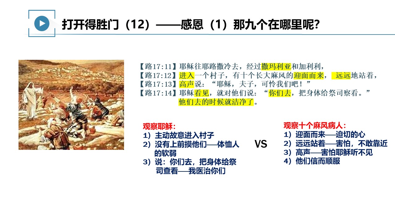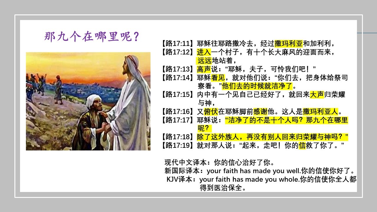 主耶稣曾经医好了十个大麻风病人,其中只有一人回来感恩。