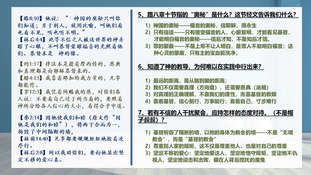 让我们更认识福音的大能,更注重与主同行、与神相交的生命建造,更勇敢为主作见证。