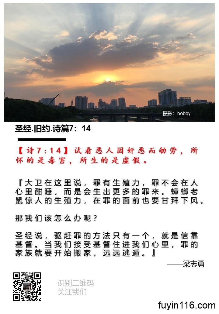 我们特别为你赐给我们诗篇7章14节的这段经文向你感恩,这节经文告诉我们: