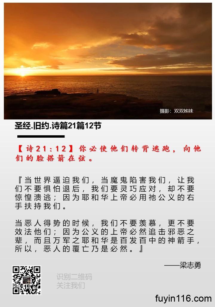 【诗21:12】你必使他们转背逃跑,向他们的脸搭箭在弦。