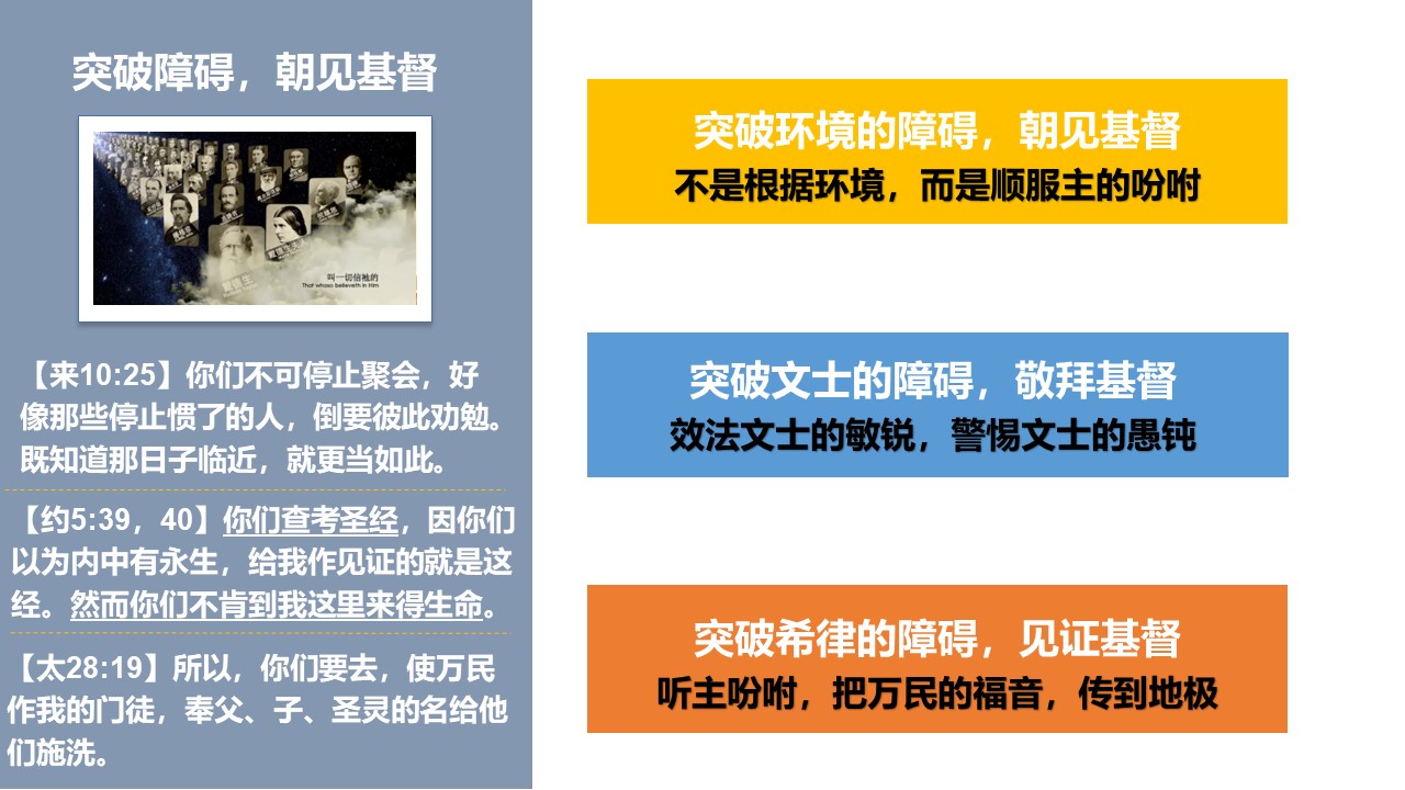 让我们更认识福音的大能,更注重与主同行、与神相交的生命建造,更勇敢为主作见证。