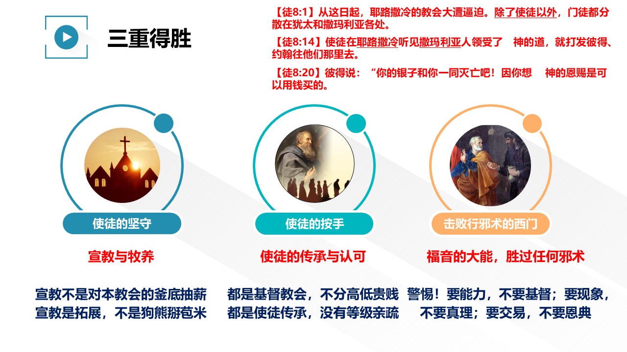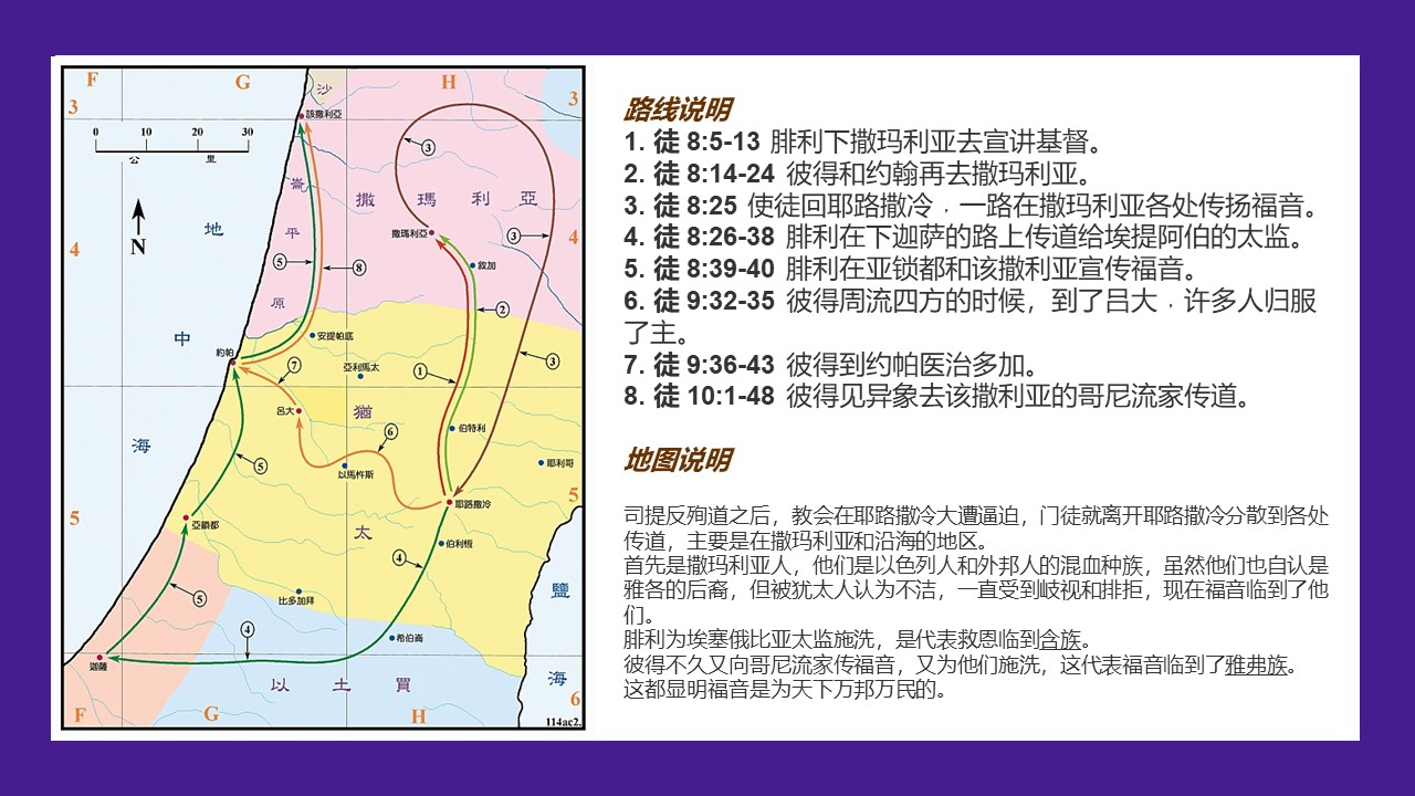 司提反殉道之后,使徒教会开始向耶路撒冷周围传福音,福音进入了撒玛利亚。