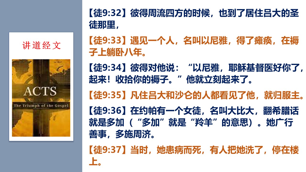 在《使徒行传》第9章,我们看到彼得所行的神迹。