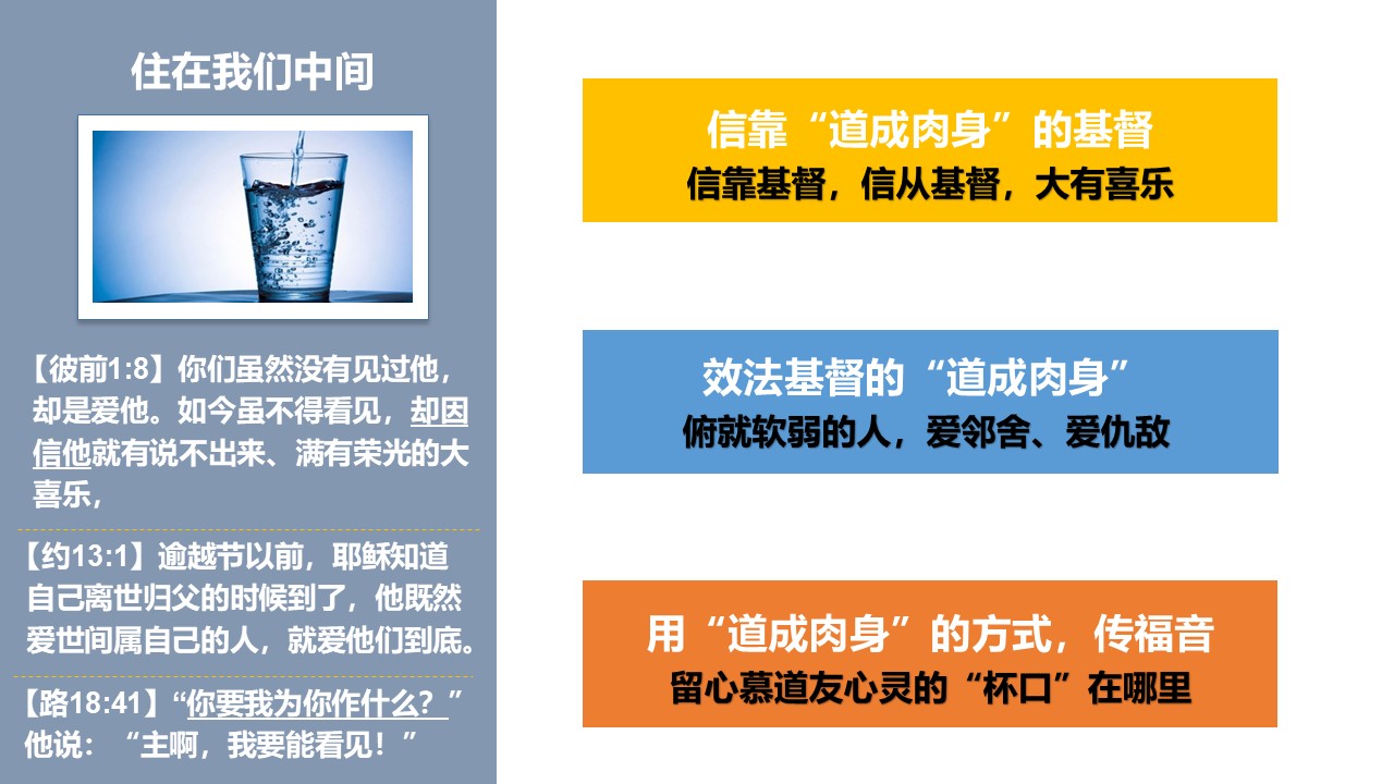 让我们更认识福音的大能,更注重与主同行、与神相交的生命建造,更勇敢为主作见证。