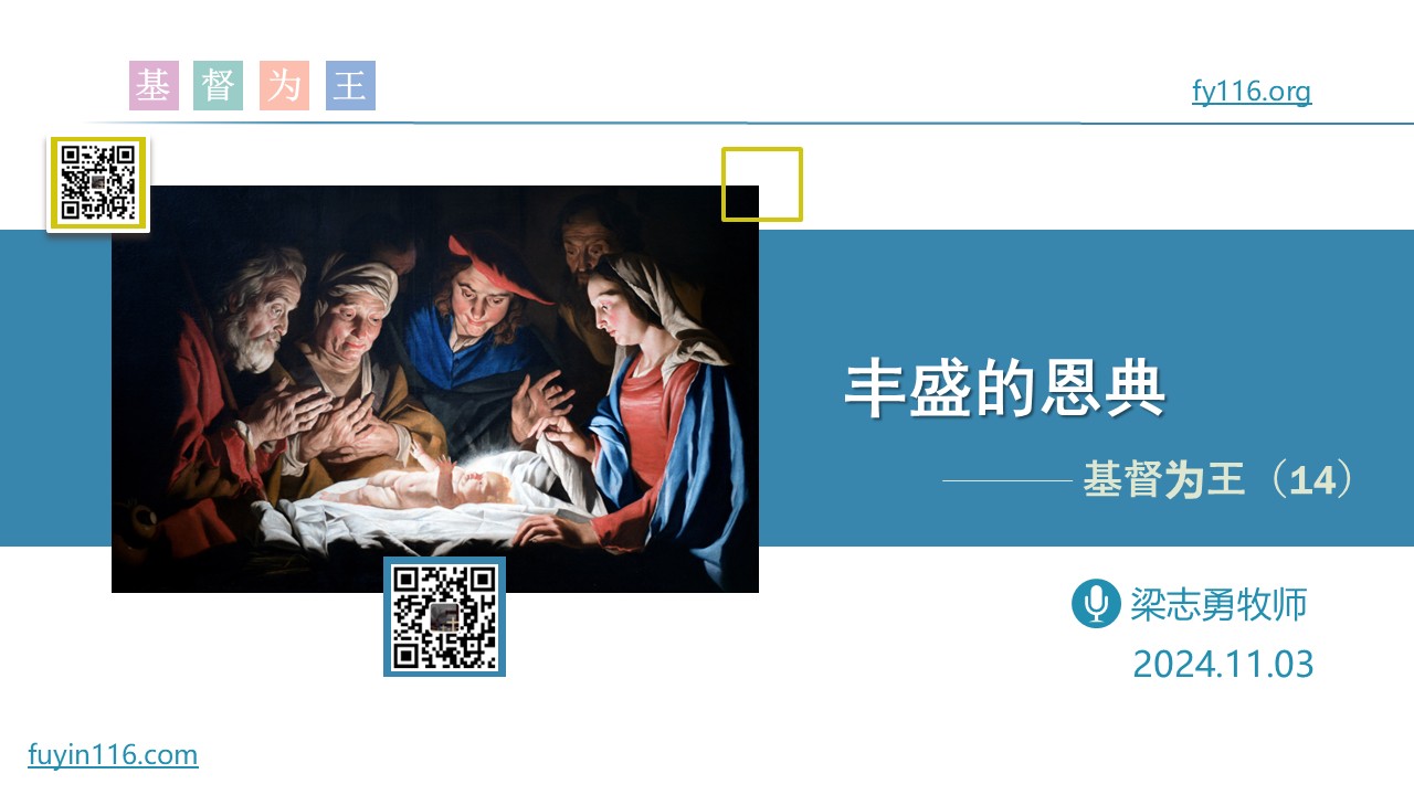 基督的“道成肉身”,向我们彰显了充充满满的恩典。