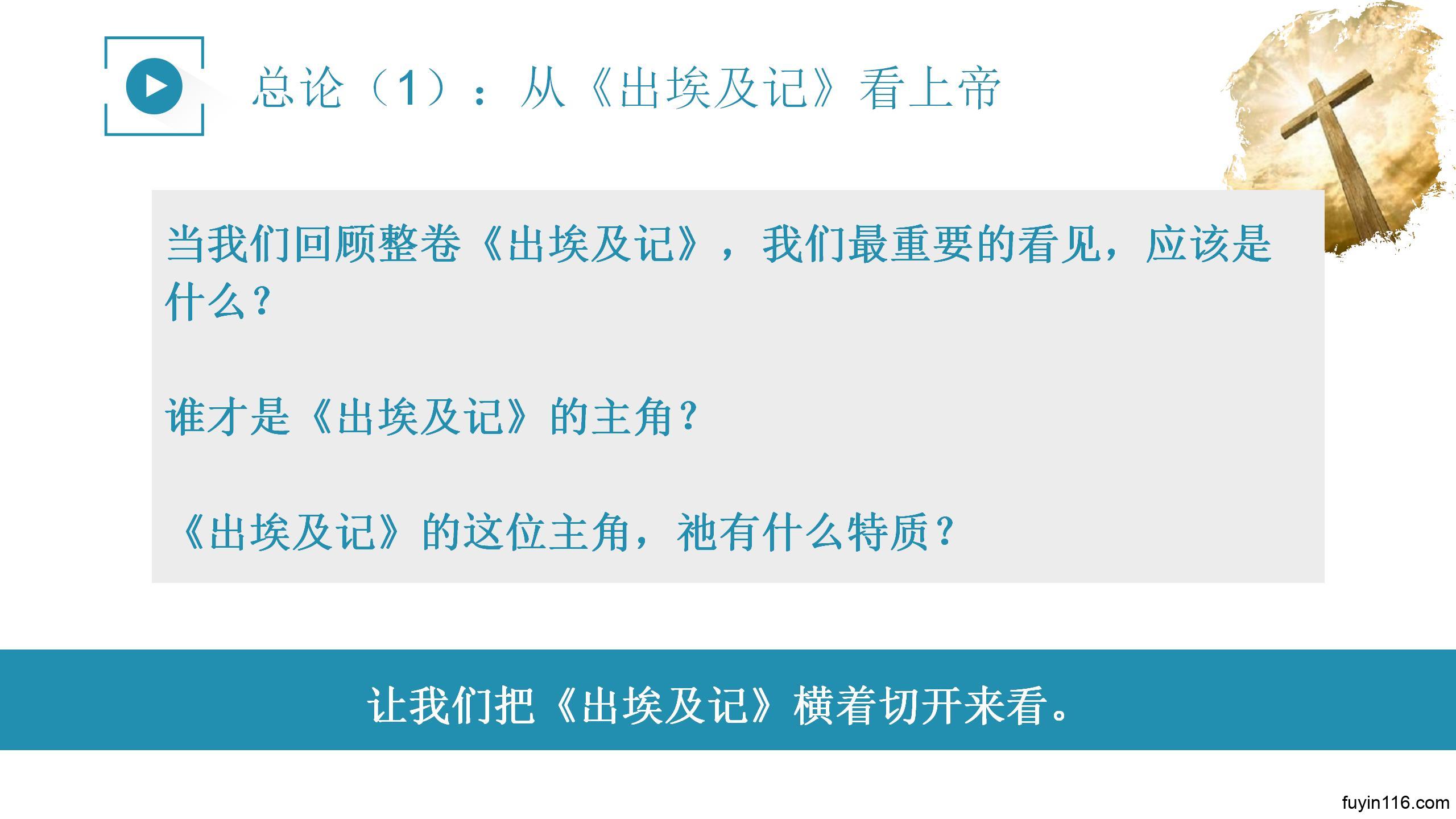 让我们从“上帝才是《出埃及记》的主角”这个真理中学到宝贵的功课,大得安慰,更有信心,活在主的恩典里,行在主的旨意中。