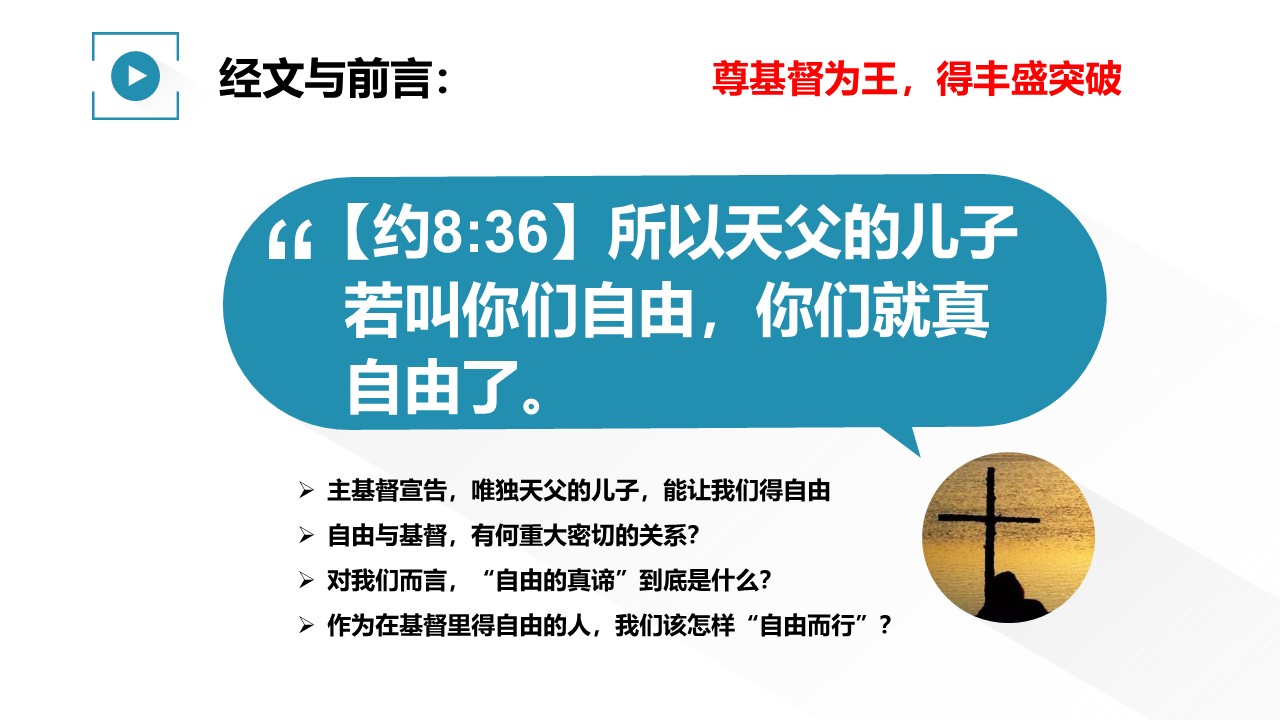主基督宣告,唯独天父的儿子,能让我们得自由