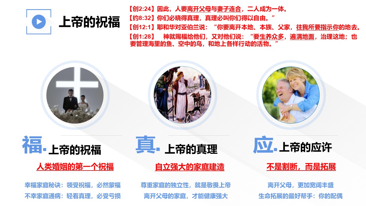 在人类的第一场婚礼中,上帝祝福我们要离开父母