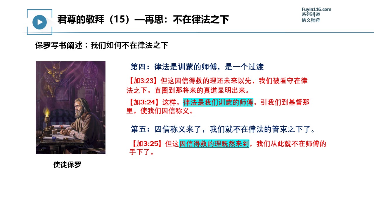 使徒保罗说“你们不在律法之下,乃在恩典之下”。