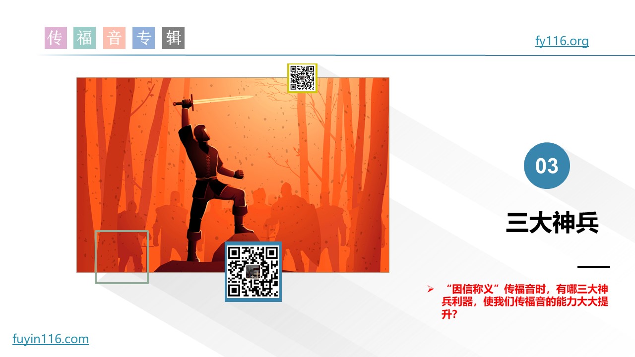 也强烈建议大家花时间听我们的《因信称义》系列讲道,必能让你茅塞顿开,充满力量和信心,去广传福音: