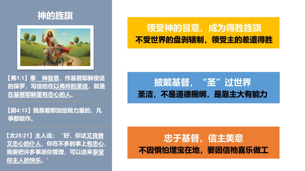 并因你的真理,信心更坚定,活在基督里,为基督而活,成为有福音使命感的门徒,坚定跟随主基督。