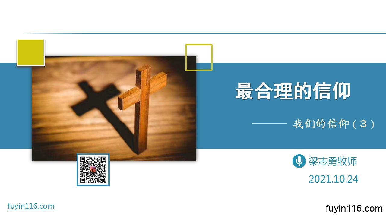 【罗12:1】所以弟兄们,我以 神的慈悲劝你们,将身体献上,当作活祭,是圣洁的,是 神所喜悦的,你们如此侍奉,乃是理所当然的。 《出埃及记》这卷伟大的书卷讲完了,让我们再去思考“我们的信仰”;我们的信仰有什么卓越之处? 保罗说,我们侍奉上帝,是理所当然的,也就是”合理“的。 为什么说,圣经启示的信仰,才是最合理的信仰? 福音信仰的合理之处,在哪里? 这个最合理的信仰,对我们意味着什么? 欢迎收听《我们的信仰》系列,第03讲 《最合理的信仰》 点下面的小三角“►”就可以播放收听了: 主耶稣基督,感谢赞美…