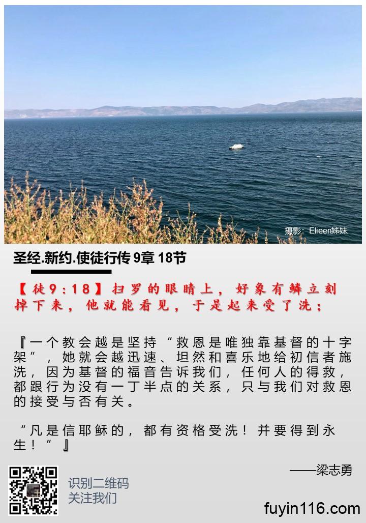 【徒9:18】扫罗的眼睛上,好象有鳞立刻掉下来,他就能看见,于是起来受了洗; 《谁有资格受洗》 作者:梁志勇牧师 朗诵:倩文师母 谁有资格受洗? (梁志勇) 【徒9:18】扫罗的眼睛上,好象有鳞立刻掉下来,他就能看见,于是起来受了洗; 在《使徒行传》里,我们多次看到初代教会坚持“信而受洗”的原则,而不是我们目前教会流行的“慕道班毕业,才能受洗”的模式。 五旬节那天,三千刚领受福音的人马上受了洗; 刚刚认识耶稣的埃塞俄比亚太监,即刻在路旁的水中受洗; 9章是曾逼迫教会的保罗刚一接受基督,就受了洗; 16…