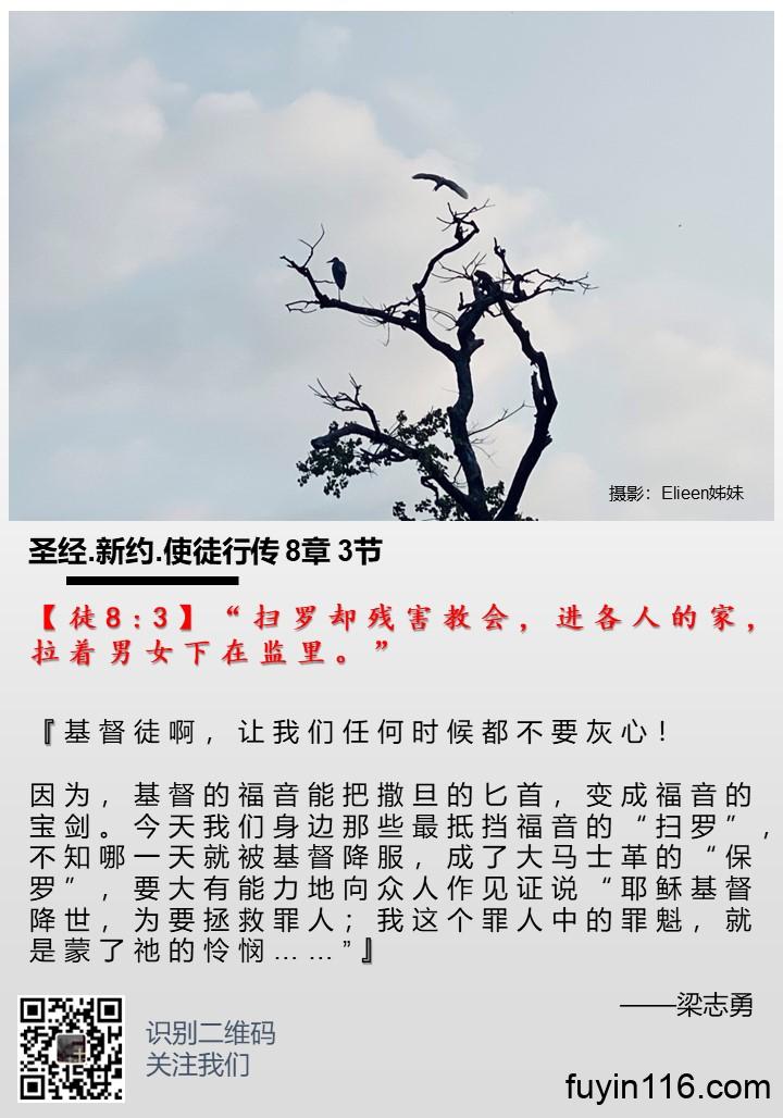 【徒8:3】扫罗却残害教会,进各人的家,拉着男女下在监里。 《撒但的匕首,终成福音的宝剑》 作者:梁志勇牧师 朗诵:倩文师母 撒但的匕首,终成福音的宝剑 (梁志勇) 【徒8:3】扫罗却残害教会,进各人的家,拉着男女下在监里。 这是初代基督教会最艰难的时期之一,竭力追求敬虔、熟读律法、自以为爱上帝的扫罗,正在竭力残害上帝的子民。 从此,我们就看见“罪”的可怕——它驱使扫罗作恶,还自以为虔诚。从此我们知道,神学、宗教、血统都不能让人得救,也不能让人属灵的眼睛打开,只有基督的福音,能拯救我们脱离罪恶,能让我…